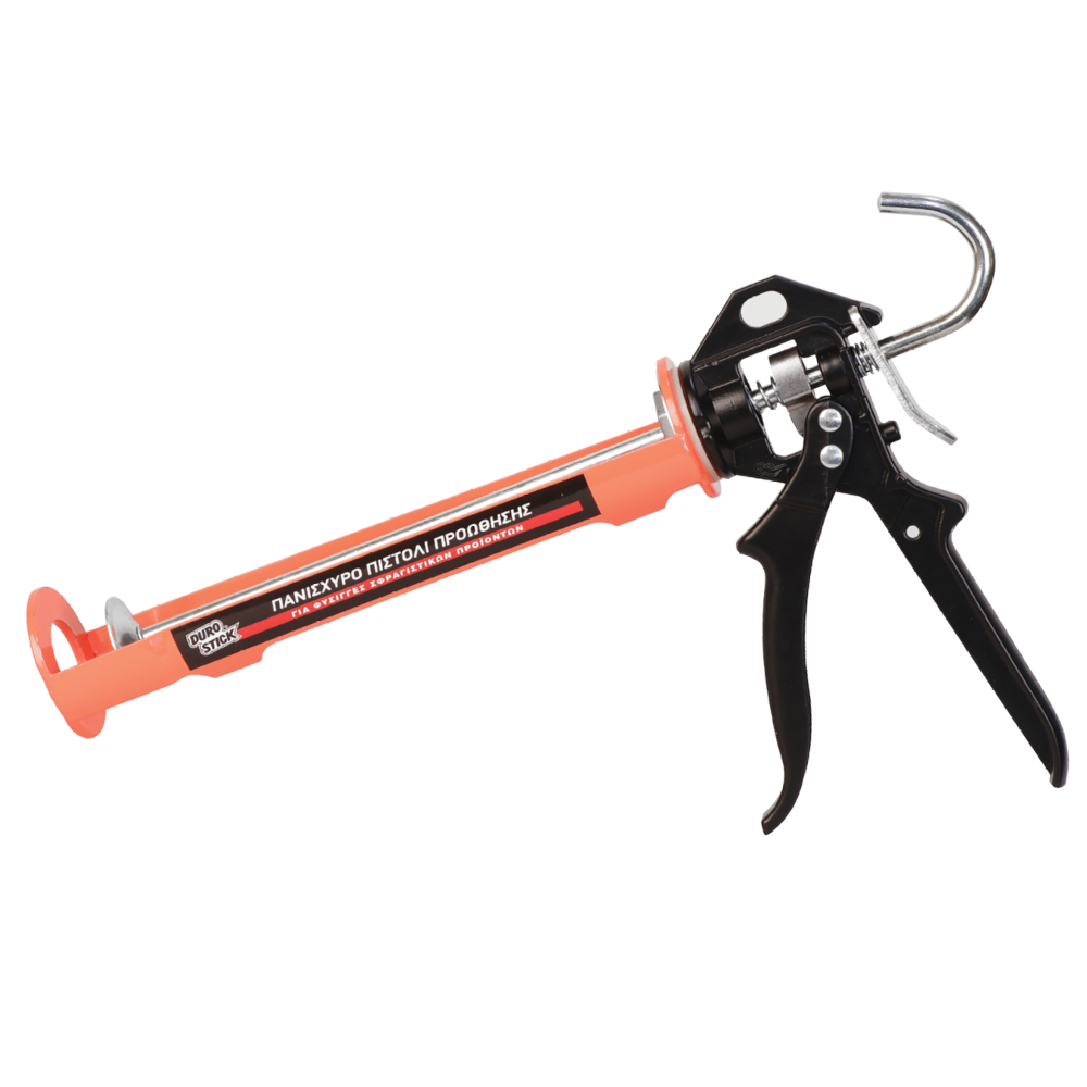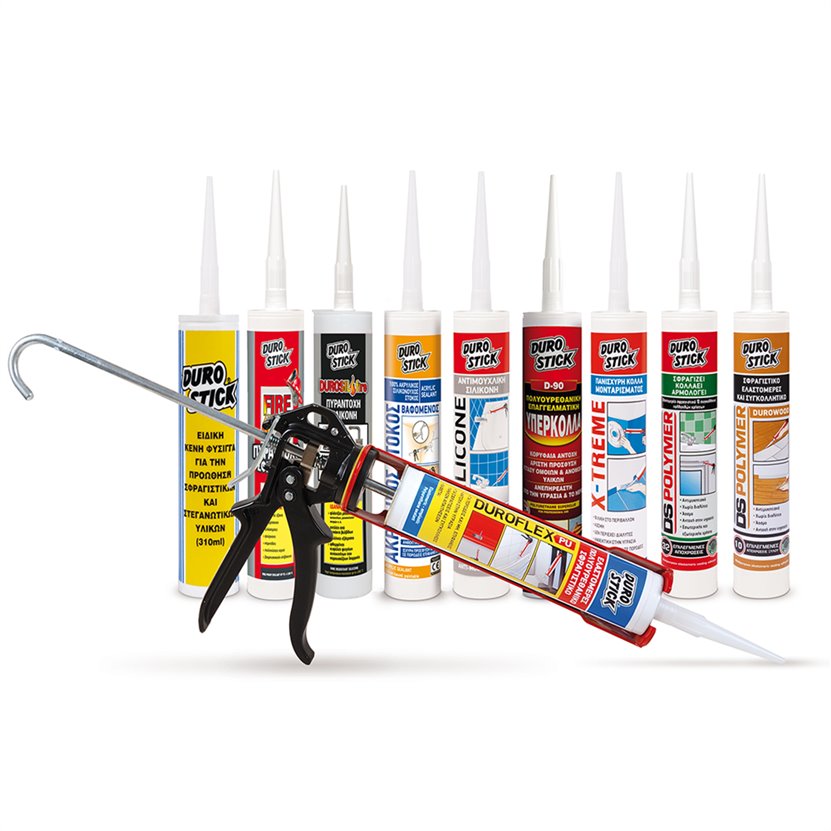 Πιστόλι προώθησης φύσιγγας, εξαιρετικής αντοχής στην εκτεταμένη χρήση, με βαρέως τύπου σκανδάλη με επαναφορά. Είναι ιδανικό για την προώθηση πολυουρεθανικών σφραγιστικών και συγκολλητικών υλικών, καθώς και ακρυλικών στόκων και σιλικόνης. Είναι απαραίτητο, λόγω της εξαιρετικής αντοχής του, να συνδυαστεί με την ΕΙΔΙΚΗ ΚΕΝΗ ΦΥΣΙΓΓΑ της DUROSTICK για την προώθηση χονδρόκοκκων αρμόστοκων DUROSTICK σε δεκάδες εφαρμογές, όπως: αρμολόγηση απορροφητικών διακοσμητικών τούβλων, ρουστίκ πλακιδίων και cotto, σκαπιτσαριστών μαρμάρων κ.ά. Διασφαλίζει καθημερινή εργασία χωρίς διακοπή και προβλήματα.